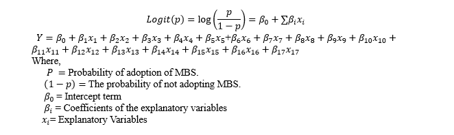 Logistic regression analysis is used to identify the highly influential factors influencing MBS adoption. This model incorporates socio-economic, demographic, and high-dimensional explanatory variables. Results are compared with existing literature in the discussion section. A probable reason justifies the results of the study.