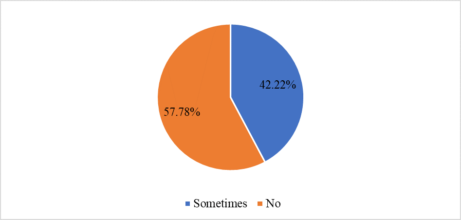 In this section, mobile banking service non-user-related information is presented with the help of bar charts and pie charts. The pie chart illustrates the need for MBS among non-user respondents, even if they do not have their own accounts. Out of 90 non-user respondents, 57.78% stated that they do not need to use MBS, while 42.22% mentioned that they occasionally need to use these services.